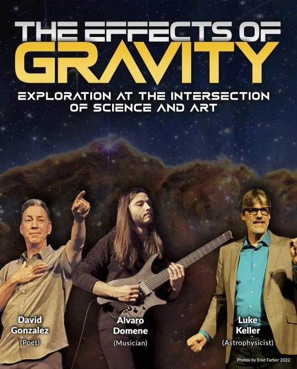 Red Shell Mgmt is pleased to announce that joining its roster of touring performances is The Effects of Gravity, an artful and innovative multi-media production that celebrates the human quest for understanding the universe and speaks of planetary stewardship. Over a decade in gestation, The Effects of Gravity is the result of an “astrojam” collaboration and is performed by storyteller / spoken-word artist David Gonzales, guitarist / composer Álvaro Domene, and astrophysicist Luke Keller, Ph.D. Lasting approximately 90-minutes, with projected images, music, poetry, and storytelling, it is the perfect show for audiences who gaze at the stars and wonder, who have questions and seek knowledge, and who know that science and art are expressions of the same basic human impulse to explore. For more information about bringing this mind-bending production to your community go to www.redshellmgmt.org/effects-of-gravity